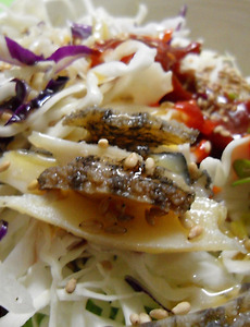 오랜만에 회덮밥이 먹고 싶어서 마트에 갔다가... 원래는 참치와 한치가 들어간 회덮밥을 만들고 싶었는데. 한치를 판매하는 곳이 없어서... 결국 참치와 전복으로 변경되었습니다..ㅜ.ㅜ 재료는 참치회, 전복, 날치알, 양상추, 양배추, 적채, 청경채, 새싹, 발사믹식초, 초고추장, 참기름, 깨, 얼음 이 필요하구요..참 많이도 들어갑니다..ㅡ,.ㅡ 장비로는 짤순이라고 불리는 야채탈수기가 필요합니다. 발사믹 식초는 비싸서... 없는경우 마늘슬라이스와 고추슬라이스로 대체 가능합니다. 비싼 전복과 참치만 빼면 야채 비빔밥을 해먹을수도 있구요~ 참치와 전복이 들어간 회덮밥 요리 이제 시작합니다! 참치, 전복, 날치알, 양상추, 양배추발사믹 식초, 초고추장, 새싹, 청경채가 보이네요. 양상추, 양배추, 전복, 날치..